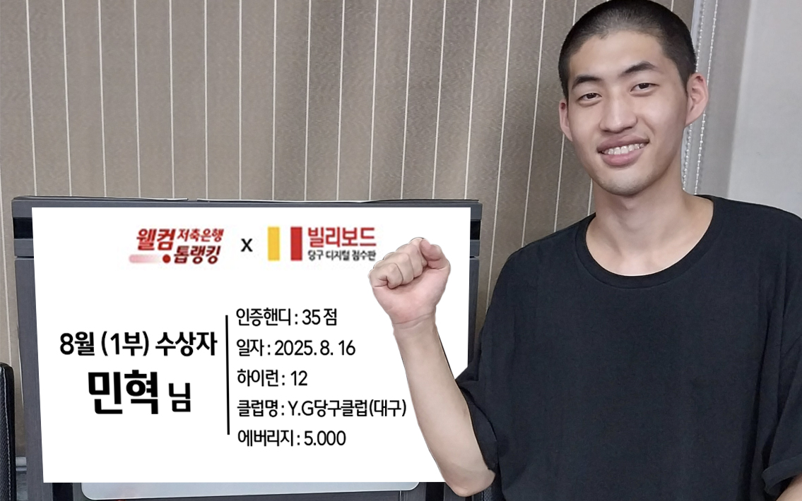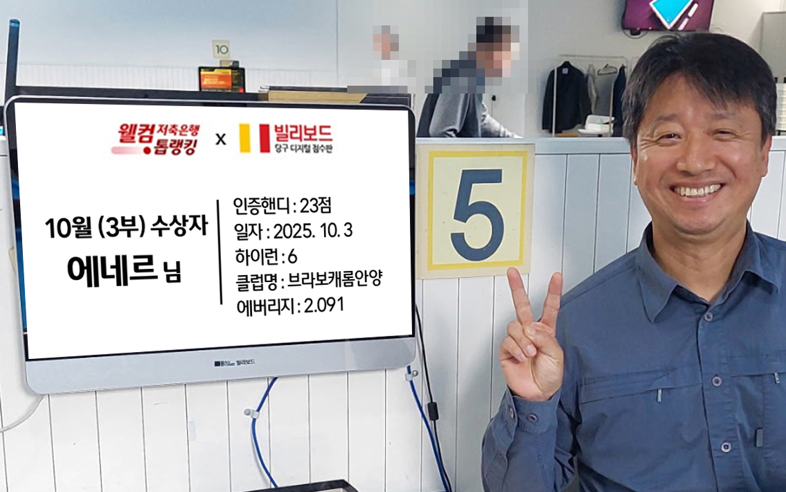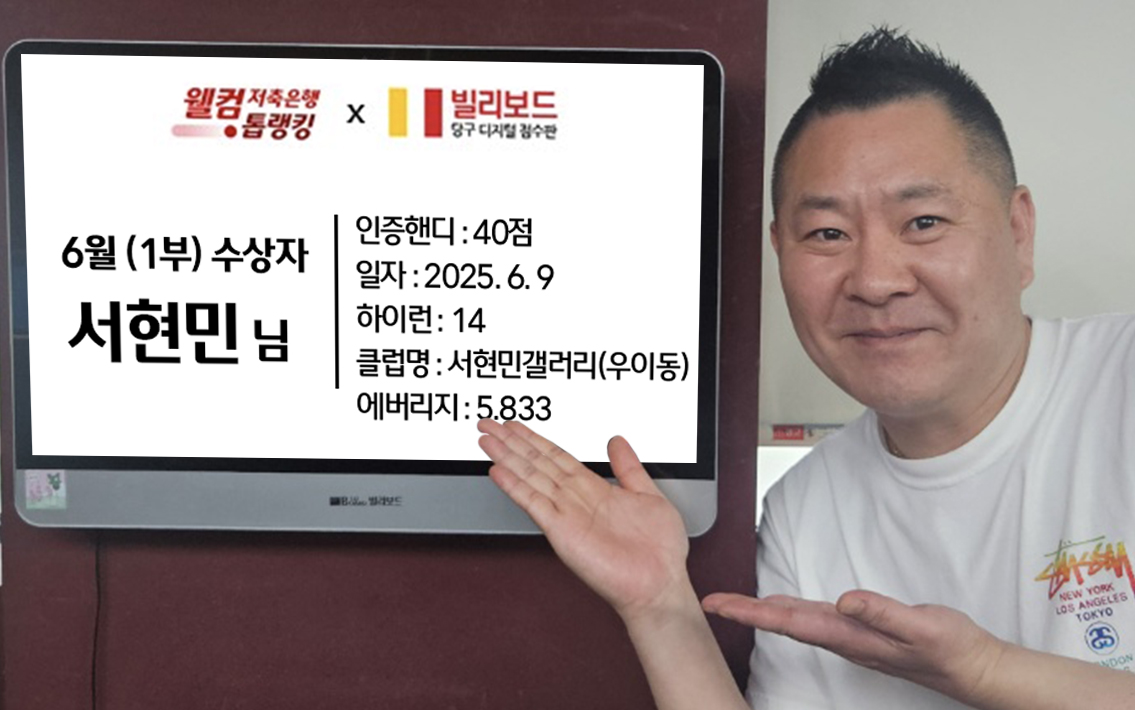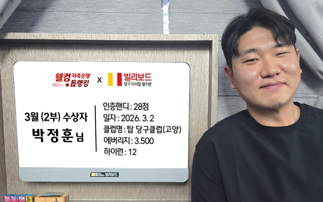 당구동호인 웰컴톱랭킹은 매월 진행되며 빌리보드 클럽에서 경기한 기록 중