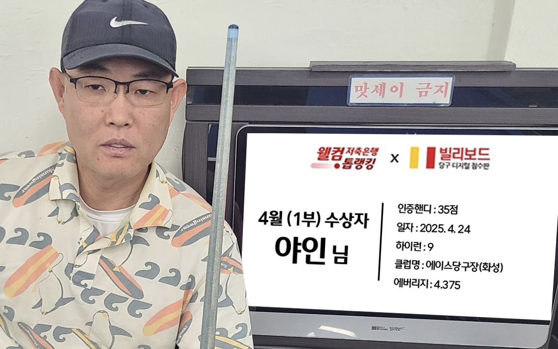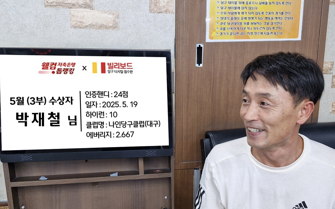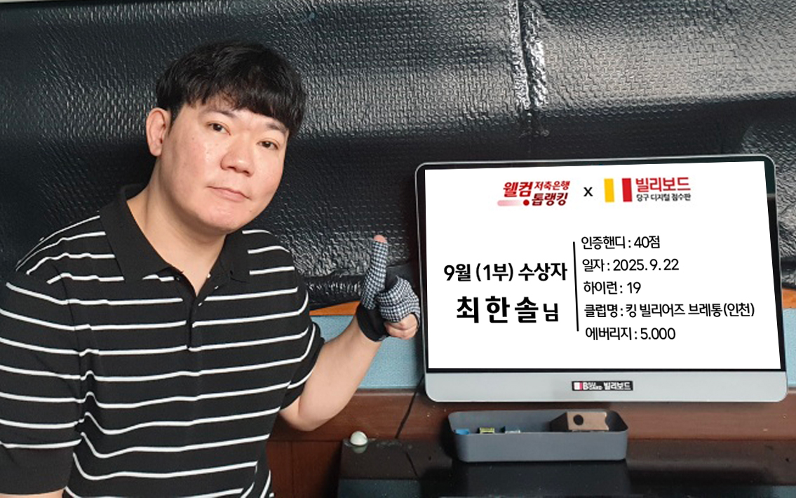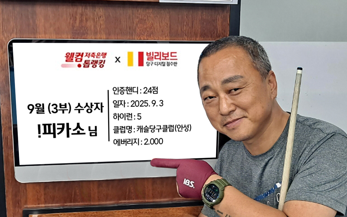 당구동호인 웰컴톱랭킹은 매월 진행되며 빌리보드 클럽에서 경기한 기록 중