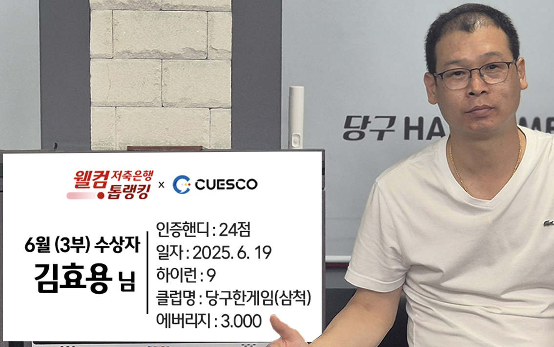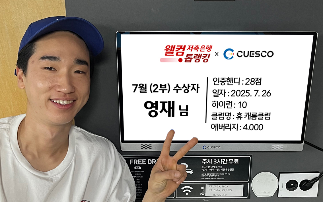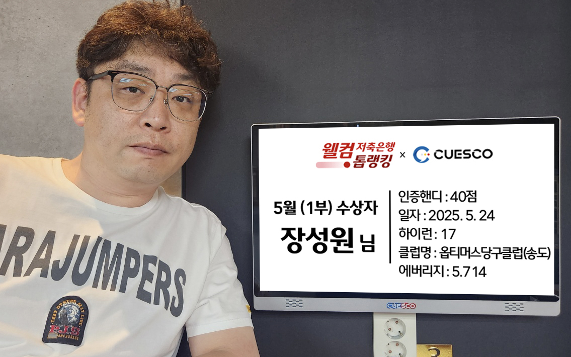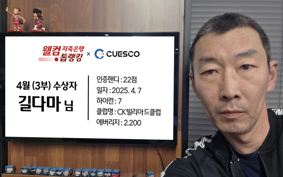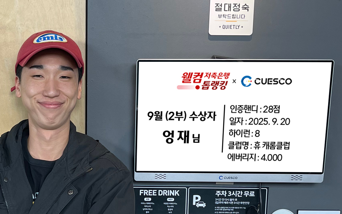 당구동호인 웰컴톱랭킹은 매월 진행되며 큐스코 클럽에서 경기한 기록 중