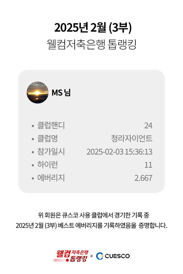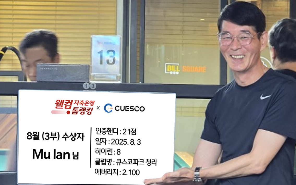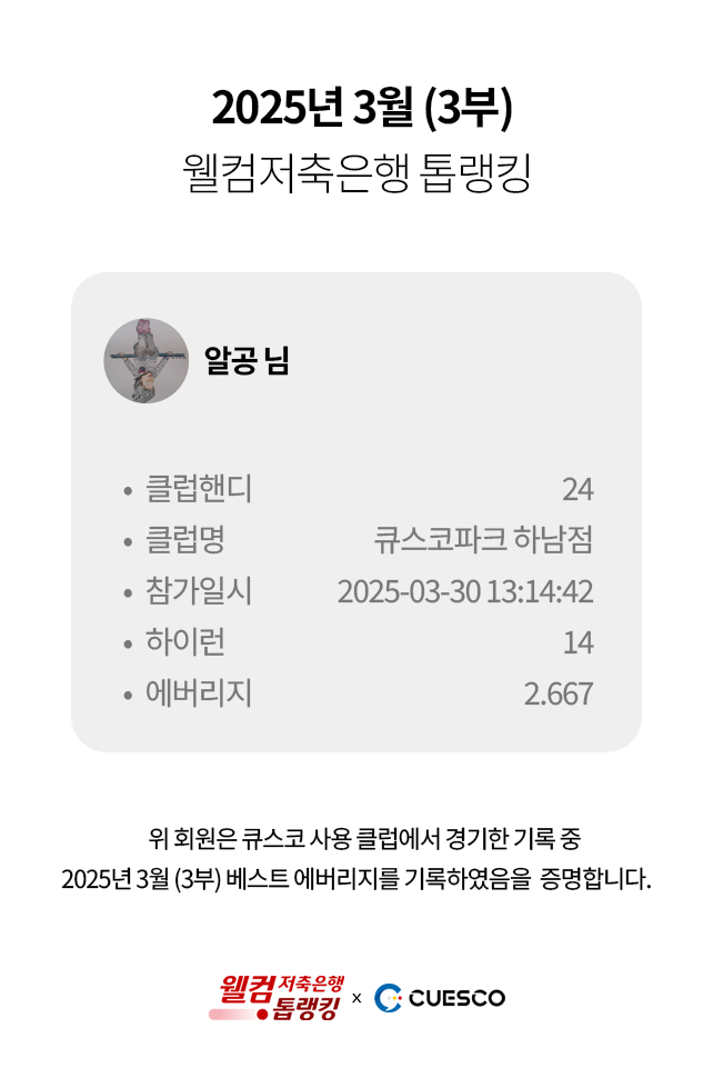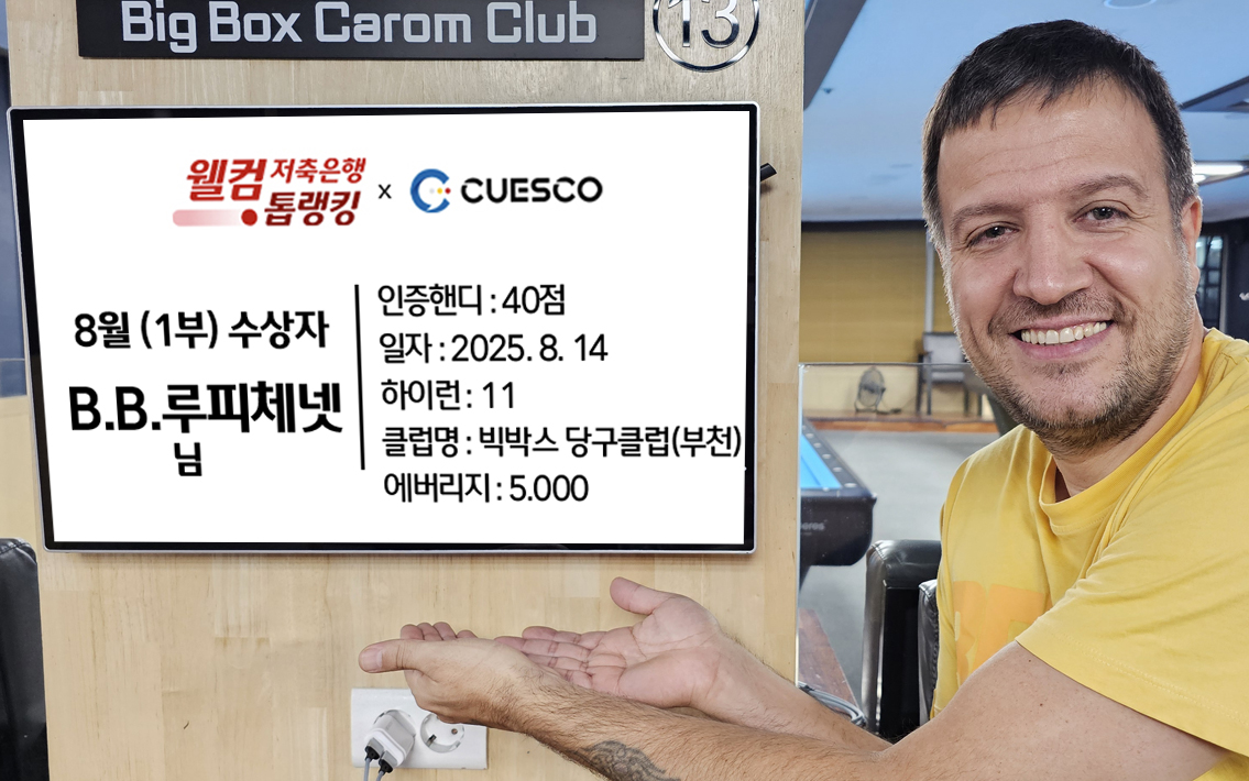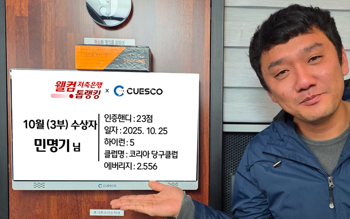 당구동호인 웰컴톱랭킹은 매월 진행되며 큐스코 클럽에서 경기한 기록 중