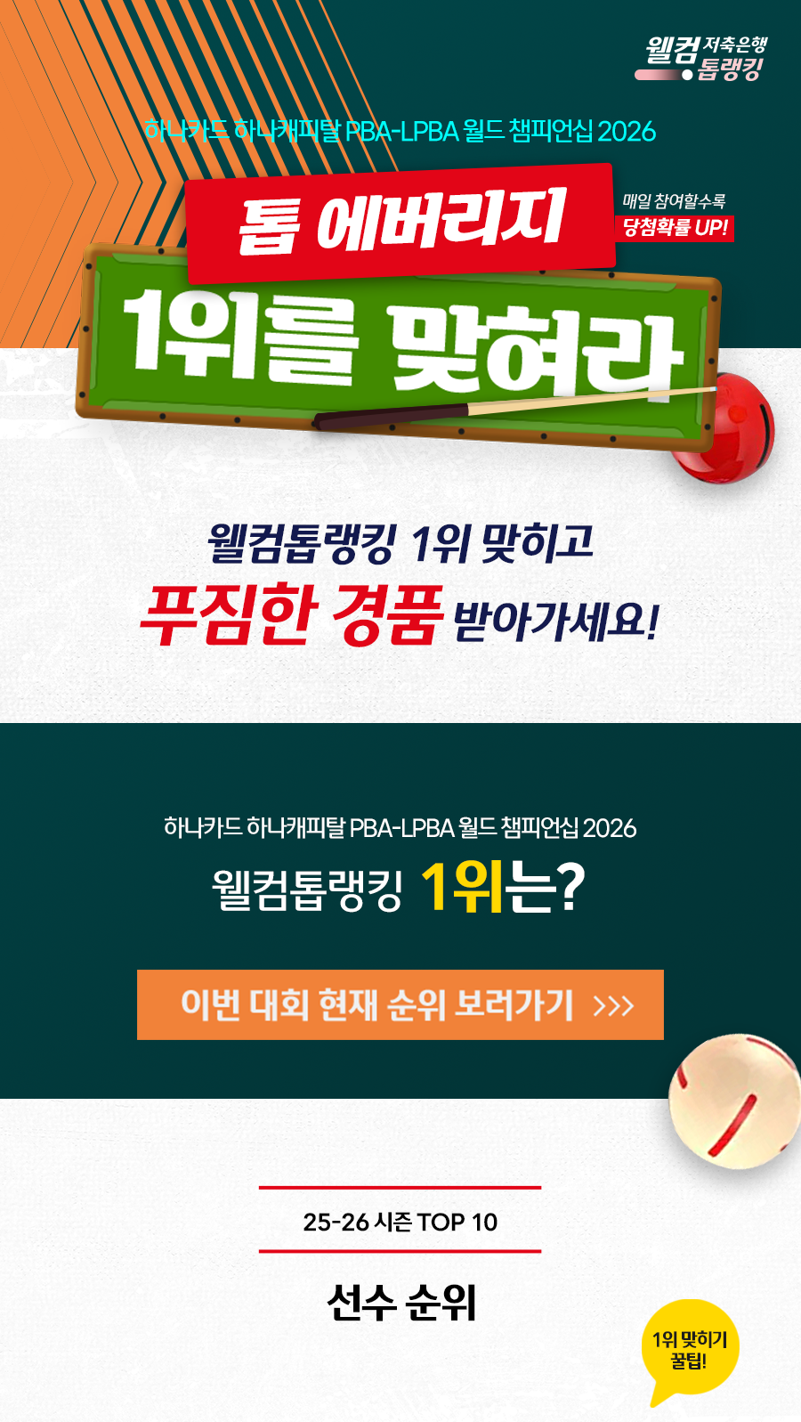 웰컴톱랭킹 당구 이벤트