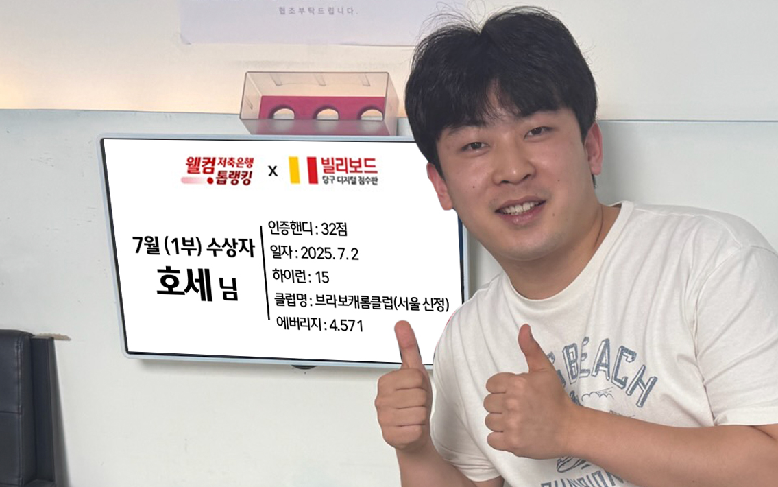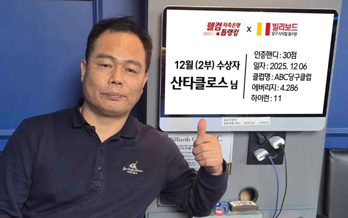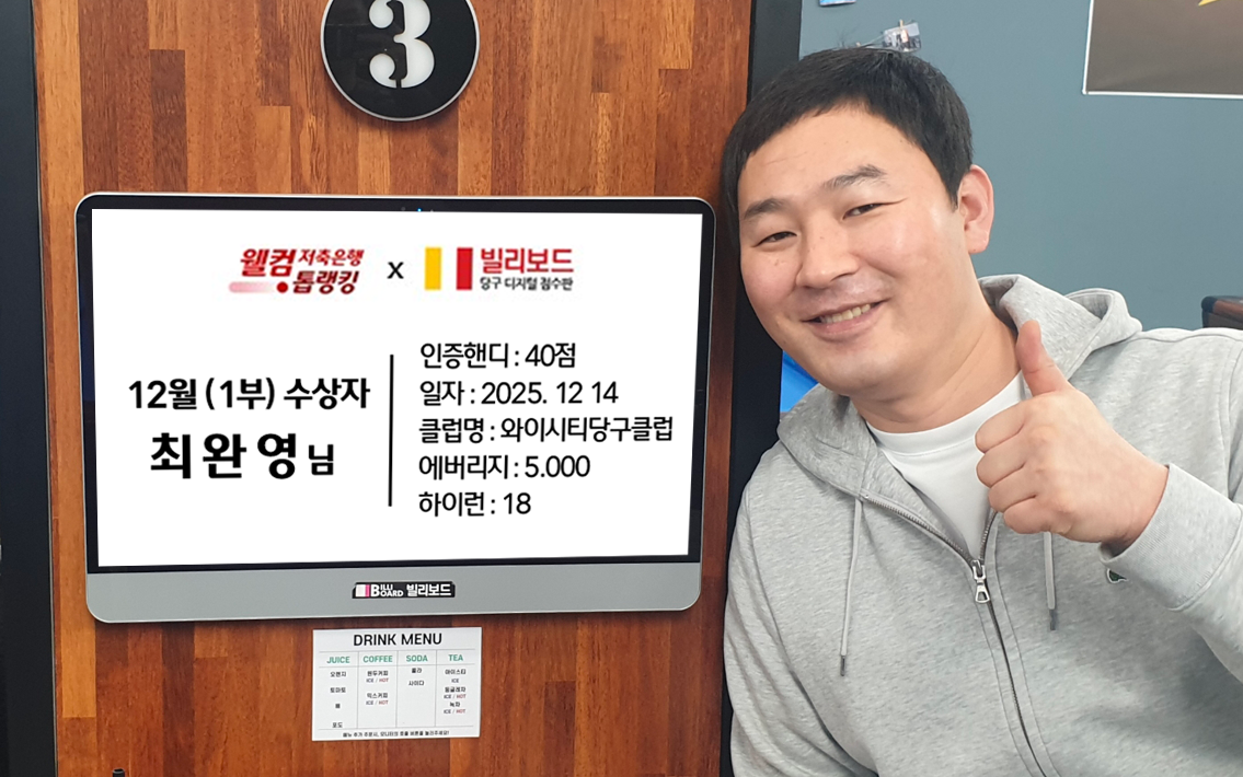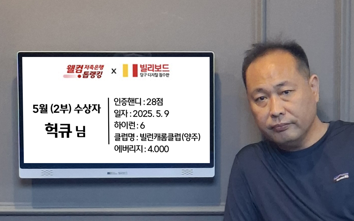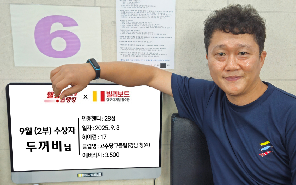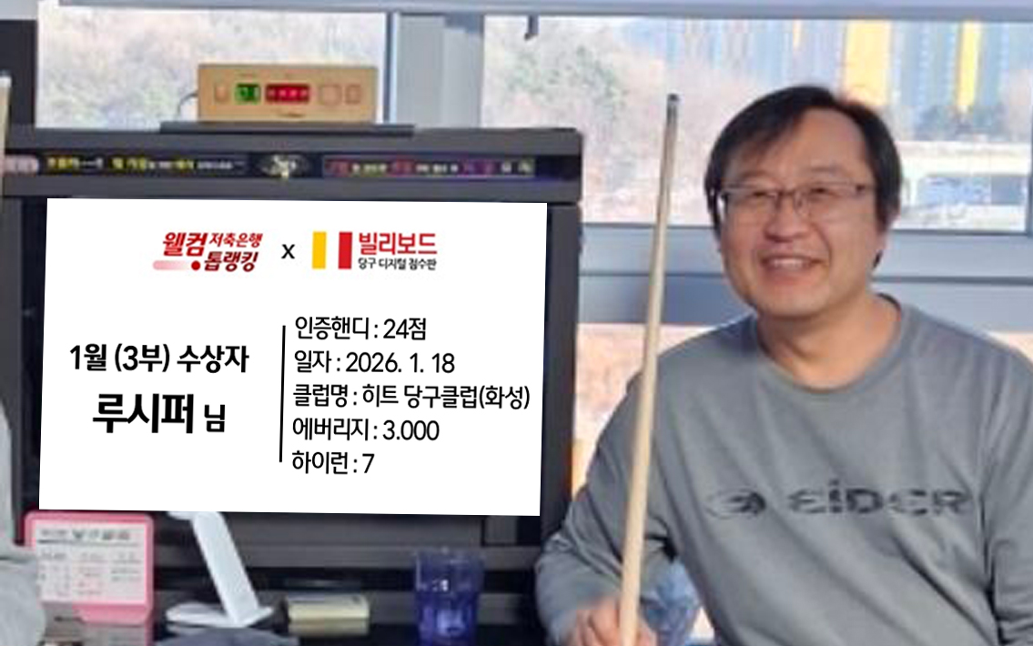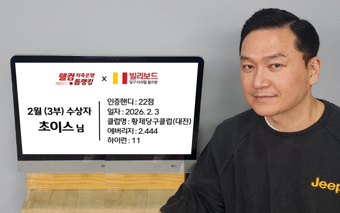 당구동호인 웰컴톱랭킹은 매월 진행되며 빌리보드 클럽에서 경기한 기록 중