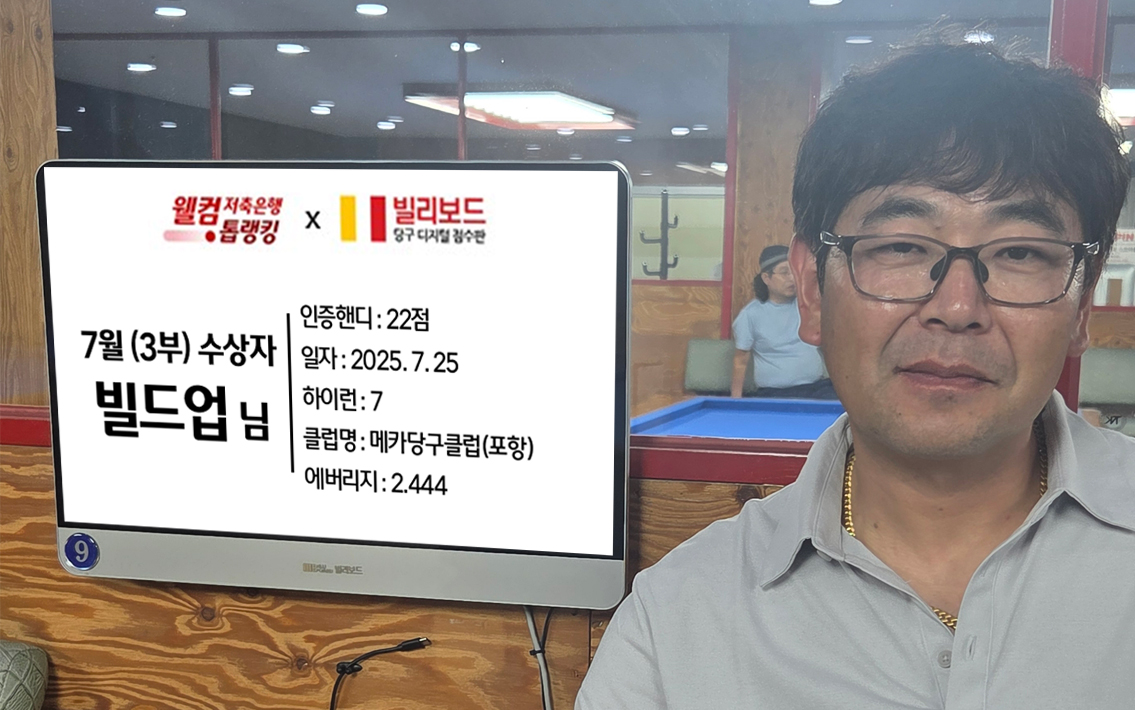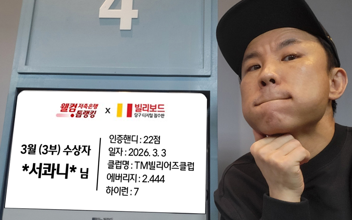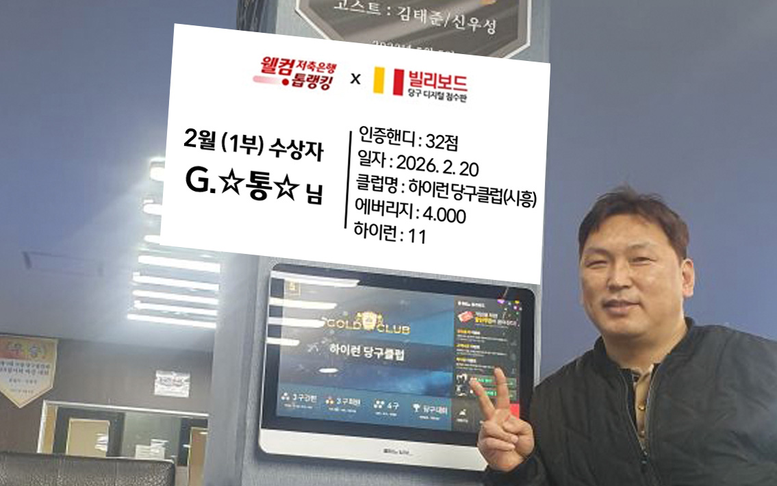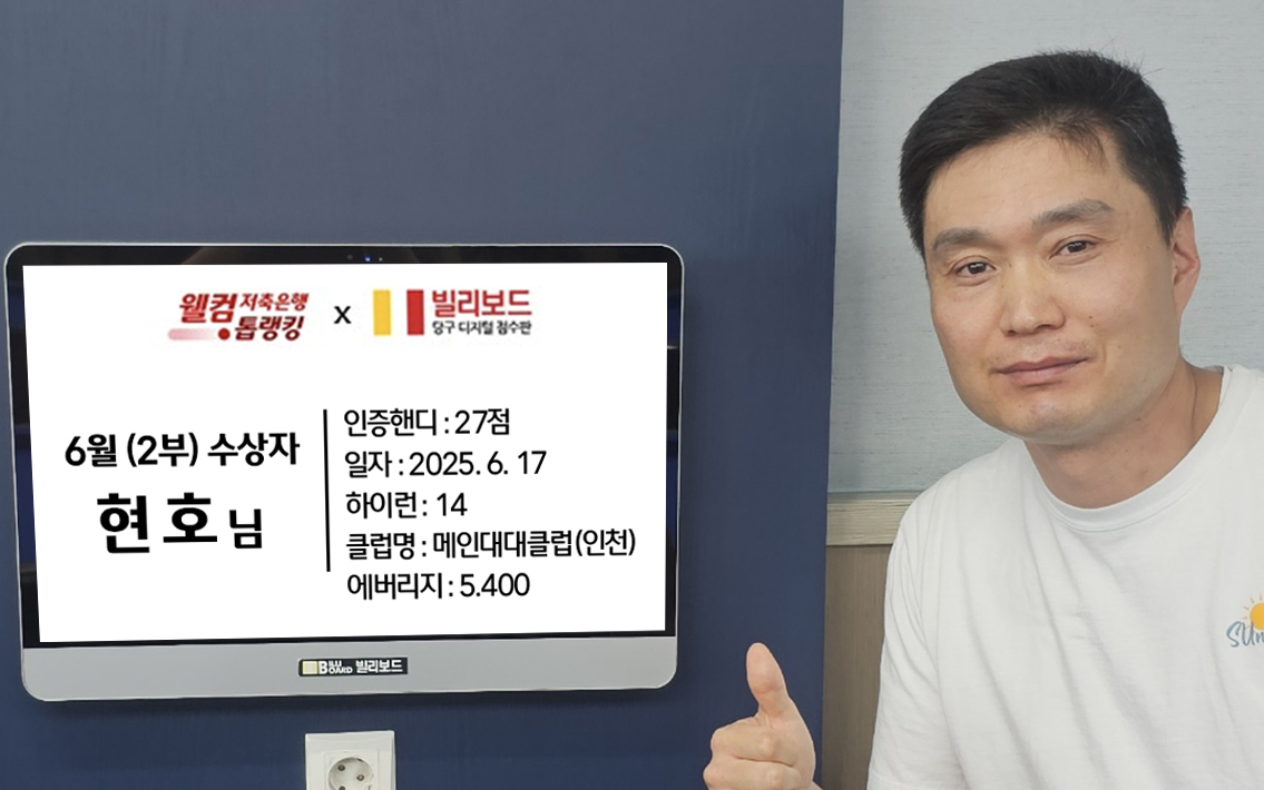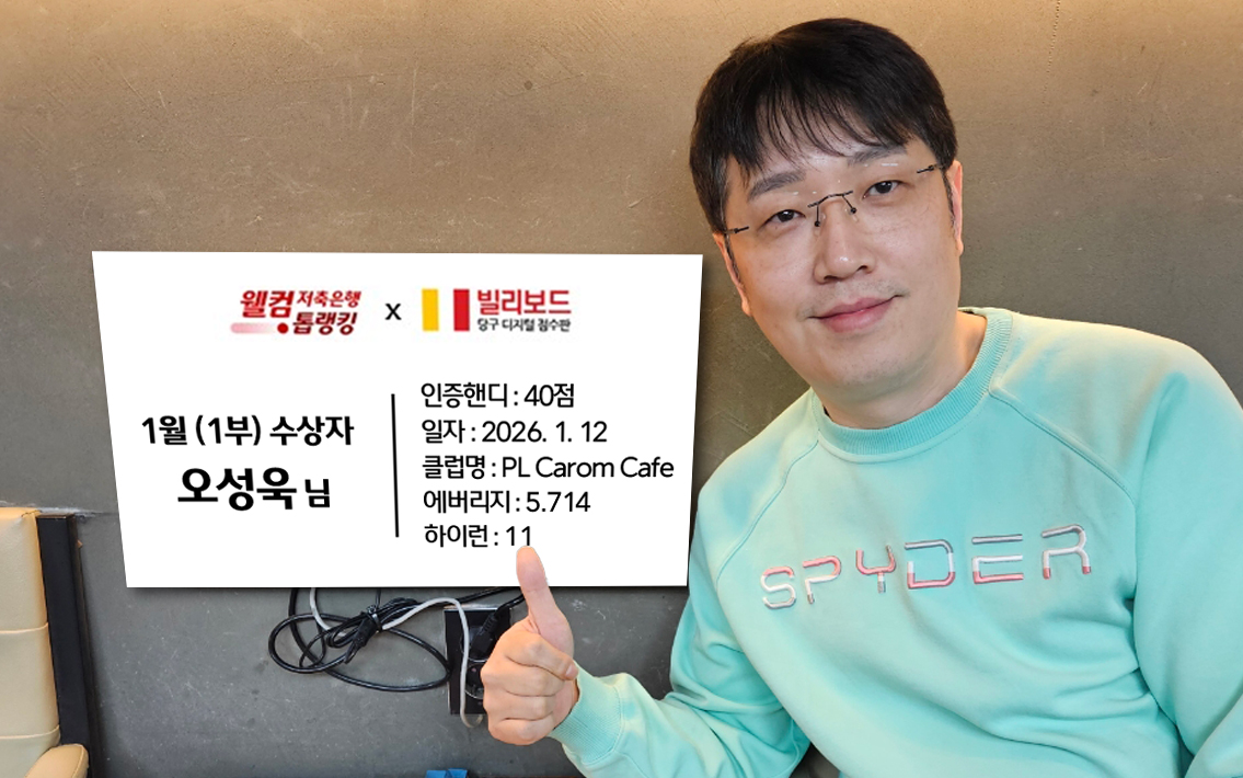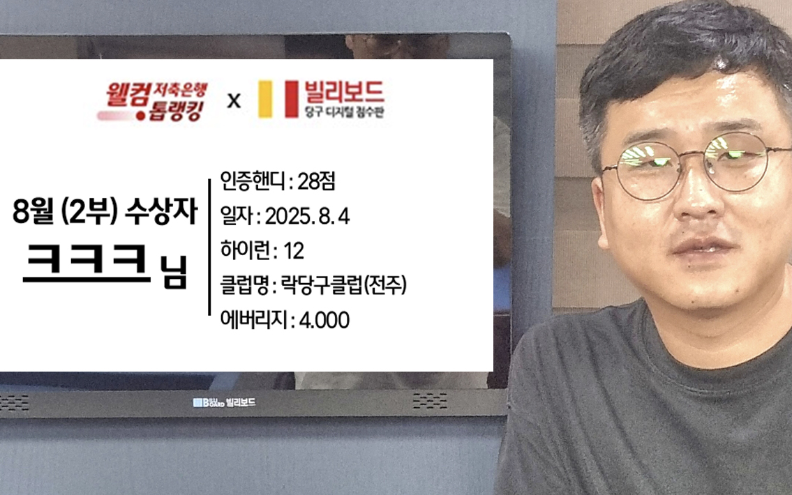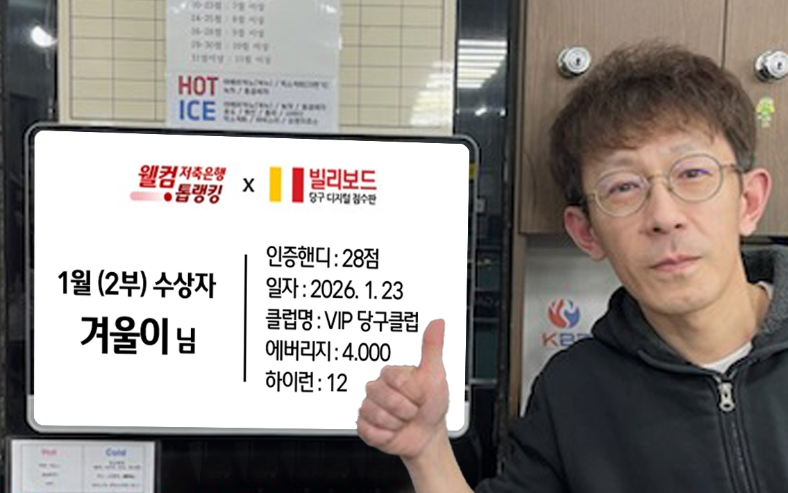 당구동호인 웰컴톱랭킹은 매월 진행되며 빌리보드 클럽에서 경기한 기록 중