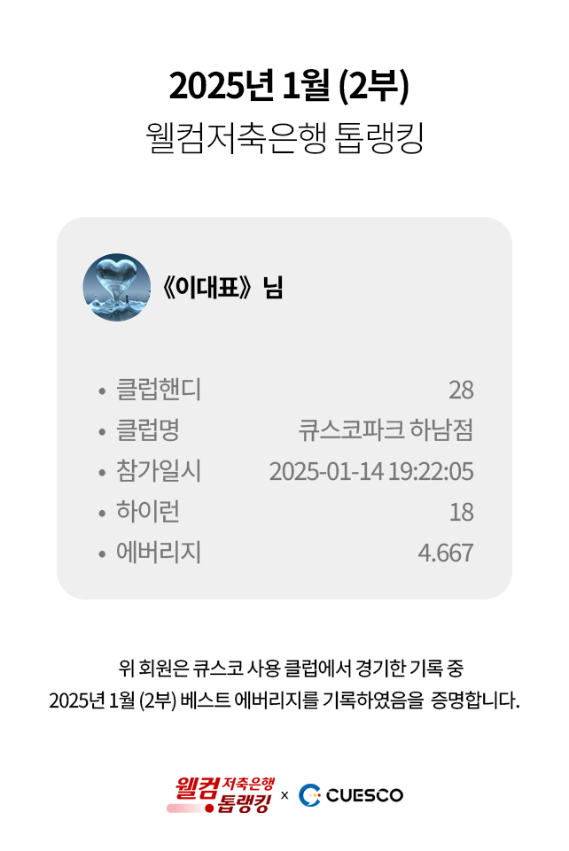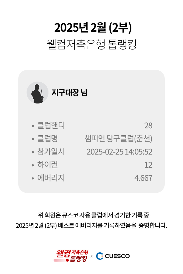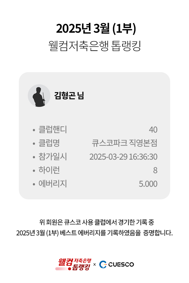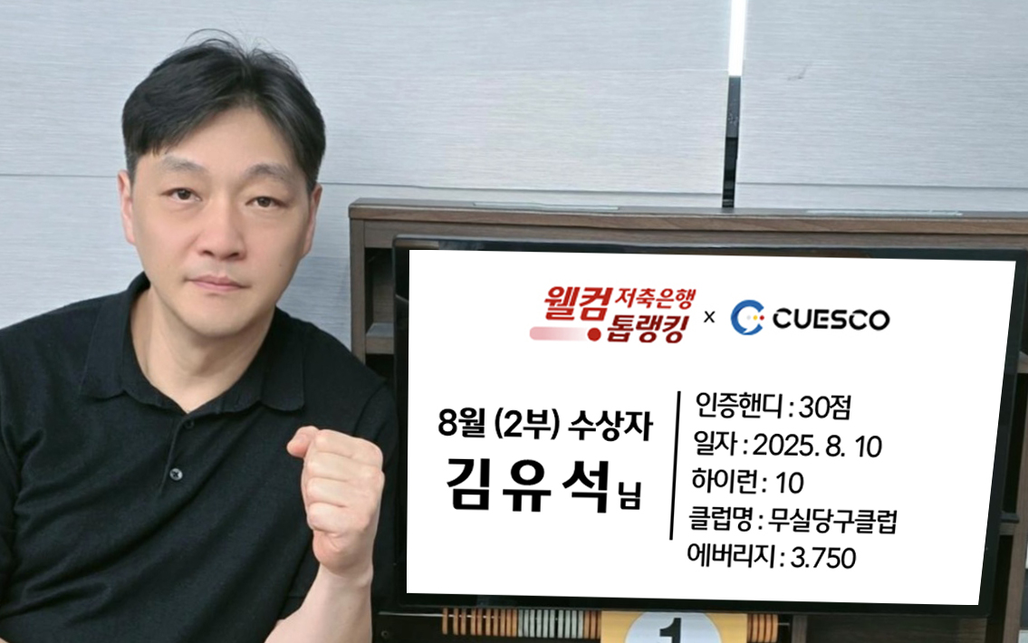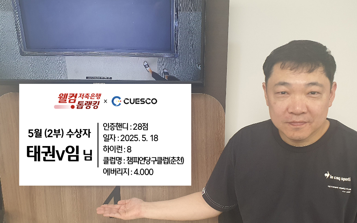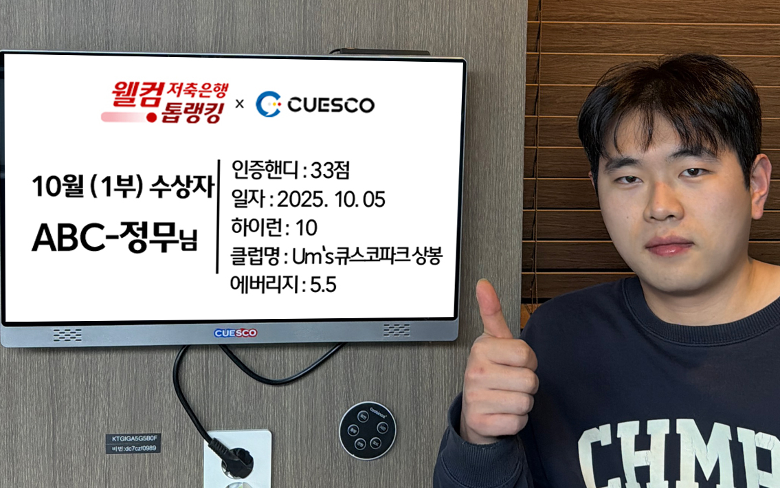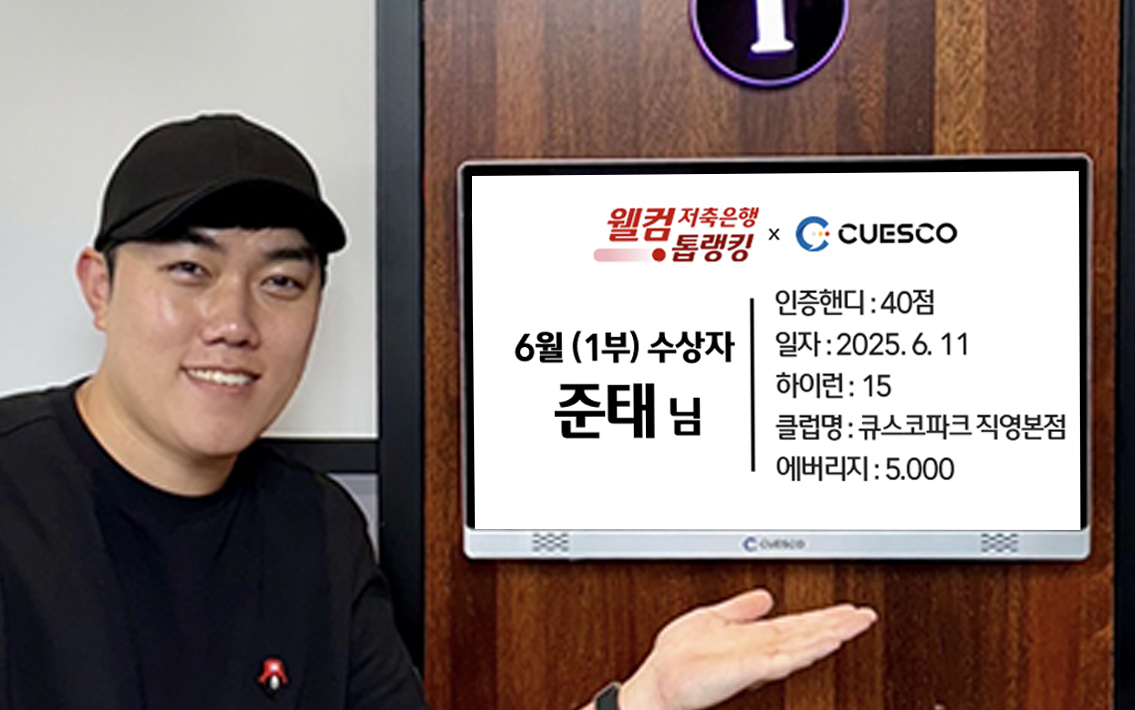 당구동호인 웰컴톱랭킹은 매월 진행되며 큐스코 클럽에서 경기한 기록 중